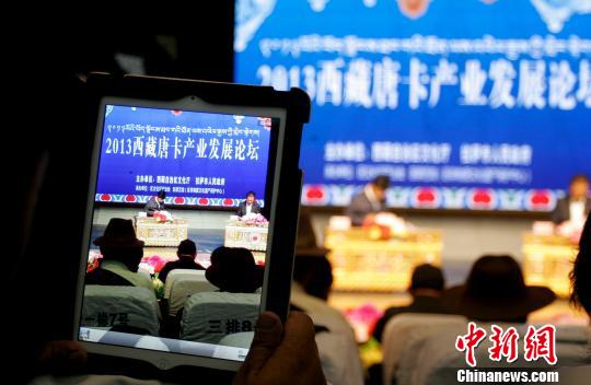 图为西藏民间唐卡画师用平板电脑拍摄论坛实况。贡桑拉姆 摄 中新网拉萨8月15日电 (贡桑拉姆)2013年西藏唐卡发展论坛15日在拉萨举行,此间藏族各大唐卡画派的代表性传承人和画师们再度聚首,畅谈西藏唐卡艺术的源流、特点、保护、传承与发展。 唐卡(为藏语音译)是藏族文化中一种独具特色的绘画艺...[详细内容]