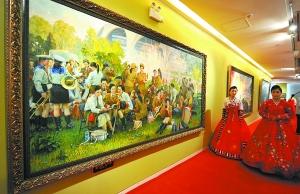 昨天,在时代美术馆的展厅内,两名身穿朝鲜传统民族服饰的少女走过巨幅彩色朝鲜画。记者 和冠欣摄 昨起,为纪念朝鲜战争胜利60周年,100多件朝鲜美术作品在京集中亮相。这是一场历年来朝鲜美术作品在中国最重要、最集中的展览。展览于今明两天免费开放,后天所有作品原地上拍。 这是朝鲜国家...[详细内容]