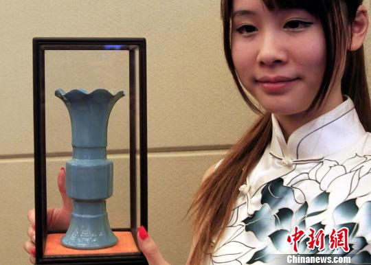 珍稀天青色花觚柴瓷亮相上海(组图)