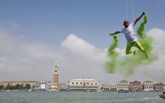 中国行为艺术家在威尼斯上演悬浮冒绿烟(组图)...