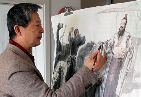 2月23日,画家郭德福在对历史组画《孔子倡俭》进行最后的润色 (陈梦阳摄) 今年是毛泽东“向雷锋同志学习”题词发表50周年,沈阳著名画家郭德福近日从他的速写本中,精心挑选出创作于上世纪七八十年代的15幅真实记录雷锋班战士军旅生活的现场速写,组成组画《雷锋班的记忆》,以鲜明的现场感带...[详细内容]