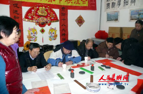 北京书法家现场为农家写春联 一超摄 人民美术网讯 2013年1月29日下午两点,北京市文联事业发展部主任陈润华等率北京楹联学会、北京中韩书画家联谊会、北京九州书画研究会的的十位楹联家、书法家一行,在数九寒冬的酷寒时节,来到北京市北五环外的海淀区东升镇马坊村,现场义务为村民量身定做个性化春联...[详细内容]