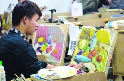 考生正在进行绘画考试。 江苏省2013年普通高校招生美术类专业统考昨天开考,全省报考总人数为48726人,比去年增加近1800人。记者在南师大仙林考场采访发现,学美术6—8个月来参加考试已是常态,突击一两个月甚至几周就来参加考试的也大有人在,“打格子”画画的方式也很普遍,“九宫格”算是好的,夸张...[详细内容]