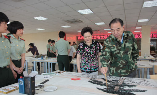 在喜庆中国人民解放军建军85周年之际,江苏省文联党组书记、常务副主席王慧芬,党组副书记、副主席杨企鹏于7月31日下午率全省知名书画家来到武警江苏省总队,亲切慰问武警驻宁官兵。参加慰问的有省文联副主席、省美术家协会主席宋玉麟,画家尹石、张兴来、包信源、王野翔、毕宝祥、佘玉奇、高建胜,...[详细内容]