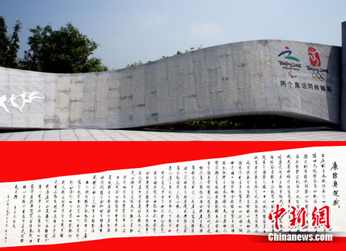 书法卧碑落户北京奥林匹克森林公园(图)...