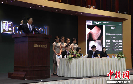 资料图:6月4日,由海内外孤本、宋版《锦绣万花谷》全八十卷领衔的179种、1292册“过云楼”藏历代古籍善本在北京匡时拍卖夜场举槌开拍。 中新网北京6月12日电(记者 张中江) 今年春拍市场上备受关注的过云楼藏书最终买家12日突生变故。北京大学当天行使北京市文物局此前规定的国有文物收藏单位...[详细内容]
