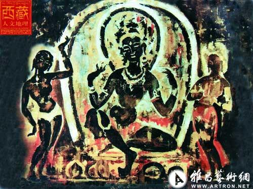 大昭寺壁画画面均绕殿堂或回廊布局,或根据内容需要用线条、图案将画面分割成若干单元,每个单元表现一段相对独立的内容。若干单元表现一个完整的佛传或佛本生故事。每个独立单元画面中心突出部分是佛、菩萨主像,两旁都坐或立有对称的菩萨像或弟子像。...[详细内容]