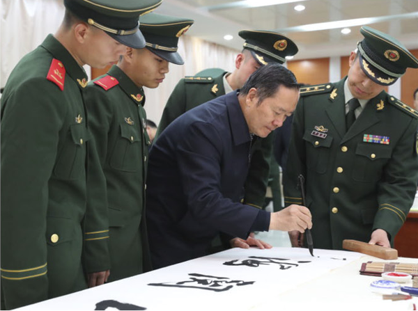 在社会拥军的热烈氛围中,书画拥军成为爱国拥军文化品牌的一道靓丽风景。 3月17日,这道风景又展现在甘肃陇南市。由十二届全国政协提案委员会副主任、中国爱国拥军促进会会长、中国爱国拥军书画院总顾问罗平飞率领的全国部分著名书画家,走进陇南驻地部队,开展“翰墨丹青壮军魂”文化拥军活动。 这一...[详细内容]