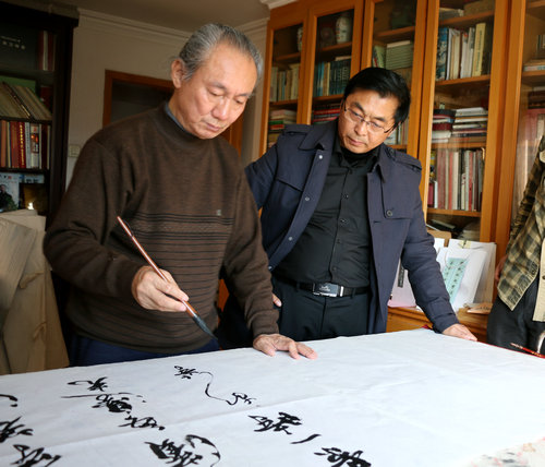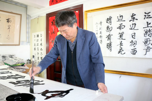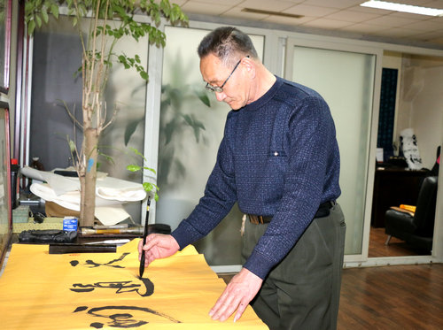 著名书法家赵福在北京接受记者采访时现场创作 中国健康新闻网(记者:许顺喜)他年轻时期受父辈影响,自幼酷爱书法,对中国的古代艺术有着一种特殊的感情;他为人诚朴、豁达、不喜张扬,把大量的时间投入到所喜爱的书法事业上;他博采众长、德艺双馨,从不以书法代价来衡量自己的人生,以其高尚的品德来...[详细内容]