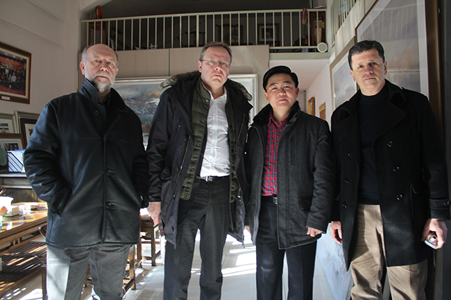 列宾美院院长、副院长、系主任来王荣院长(右二)工作室艺术交流 大地施恩慷慨境 灵静笔触虔敬心 如果说一个人的作品得到大众的喜欢,那说明他的画有一定广度;如果说一个人的画得到美术馆的收藏,那说明他到画有一定的深度。如果说一个人的画 ,作为一件国礼赠送给外国元首,那说明他的画就具备了一...[详细内容]