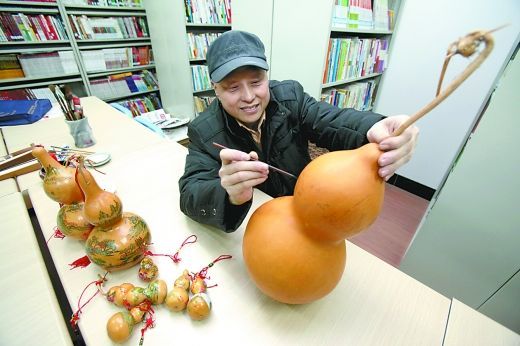 老李画的这个葫芦有点大。重庆晨报记者 王海 见习记者 曾雪嵩 摄 除了为居民独家制作的生活服务特约VIP卡,南湖社区的新鲜事儿还不少。社区里有个叫李华渝的达人,琢磨出在葫芦上作画的方法,邻居们觉得有趣极了,排着队要他画葫芦。 一碟颜料、几支画笔,在李华渝手中,普通的葫芦变成精美的艺...[详细内容]