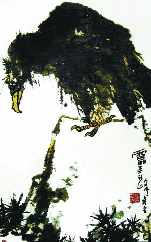 《鹰》 ■潘天寿(1897-1971),现代著名画家、教育家。早年名天授,字大颐,自署阿寿、雷婆头峰寿者、寿者,浙江宁海人。擅画花鸟、山水,兼善指画,亦能书法、诗词、篆刻。1915年考入浙江省立第一师范学校,受教于经亨颐、李叔同等人。其写意花鸟初学吴昌硕,后取法石涛、八大山人,布局奇险,用笔...[详细内容]