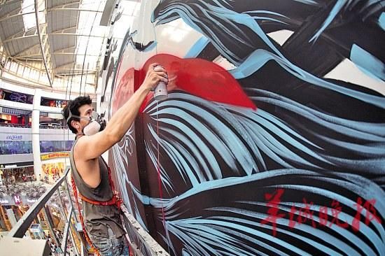 Seth在高空脚手架上创作 在人流如织的正佳广场,全球室内最高的涂鸦吸引众人目光。黑色兔群蹦跑翻腾,汇聚成马首蛇身的形状,飞鸟、鱼群在其中飞舞……这幅涂鸦作品主题为“We all make the one”,位于正佳广场中庭42米电梯外墙,是目前“全球室内高度最高”的涂鸦艺术作品。来自葡萄牙里斯...[详细内容]