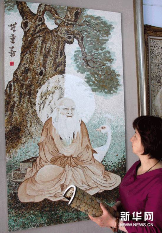 (1)李安玲在家中观看自己创作的宽1米、高1.8米的《无量寿》蛋贴画作品。这幅作品耗时两个月、使用10多种蛋壳拼接而成。2013年4月,《无量寿》作品在山东枣庄市博物馆展出。 今年44岁的李安玲居住在山东枣庄市中区立新社区,从小爱好美术的她,早在1995年就开始收集颜色各异、形状不一的蛋...[详细内容]
