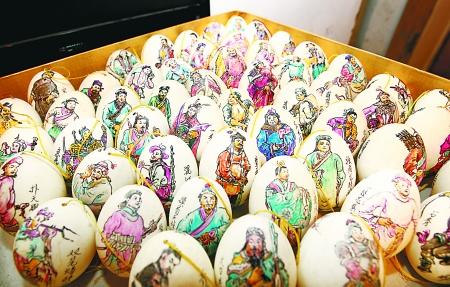 (图)74岁老人蛋壳上作画 画出水浒108将...